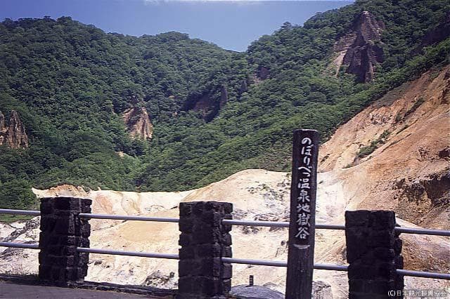 登別温泉街の北東にある、長径約450m の爆裂火口跡。登別温泉の最大の泉源地であり、谷に沿って多くの噴気孔や湧出口が点在し、もくもくと白煙を上げている様子はまさに地獄のよう。