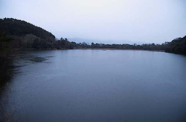敦賀半島の先端近く、明神岬の付け根にたどり着くと、右手に猪ケ池が現れます。周辺は野鳥の宝庫で観鳥小屋もあり、野鳥の生態が観察できます。