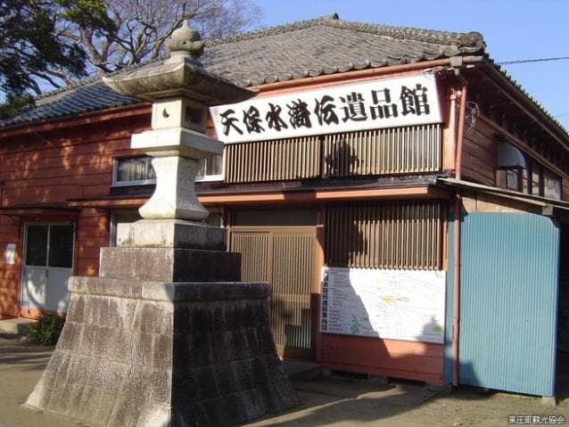 天保水滸伝遺品館には、天保水滸伝にちなんだ文化財約50点が保存されています。笹川氏繁蔵が愛用していたキセル、三度笠、平手造酒愛用の手鎗、徳利、勢力富五郎の短筒など当時の侠客を物語る遺品や重要文化財として保存されている古文書などが展示されています。展示品は地元の方からご提供いただいたものが数多くあります。