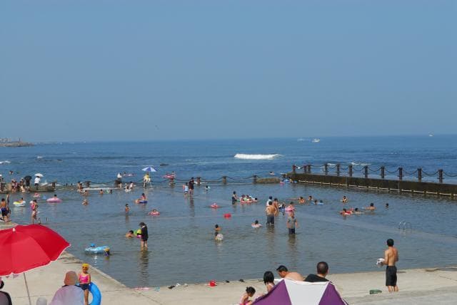 潮の干満を利用した海水プールです。プールの中には小魚が泳いでいたり、プールサイドにはカニが歩いていたり、海の生き物と触れ合うことができます。波の影響が少ないため、家族連れに大人気です。周辺には那珂湊おさかな市場や日帰り温泉などもあり、一日中楽しめます!