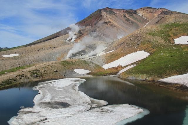 道内の最高峰、夏は登山、冬はスキー。スキーは日本で一番長い間楽しめる。中腹の旭平までロープウェイが通じておおり、そこから山頂までは2時間ほど。