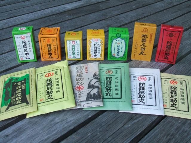 洞川地区の旅館街を歩いていると陀羅尼助と書かれた看板が多く見られます。陀羅尼助とは、胃腸によく効く古くから修験者の秘薬とされた和漢薬であり、二日酔い、下痢等を含め、お腹の調子が悪い場合のすべてに効果がある万能薬です。薬の名前の由来は、僧侶が陀羅尼という経をとなえるとき、この経が非常に長く眠気防止のため口に含んでいたことから、陀羅尼助と呼ばれるようになりました。また、役行者が修行中、腹をこわした際に黄柏(きはだ)の皮を口に含んで治した事から始まったとも言われています。