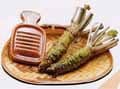 生ワサビ・ワサビ漬け・三杯酢漬・ノリワサビ・ワサビミソなど。また、河津町内で味わえる「泣けるグルメ」としてあんバタわさこ(あんにバターとわさびを練りこんだアンパン)や鮎泣きそば、わさびモヒートや泣きべそ餅、わさびソフトクリームなど様々なグルメを展開中。
