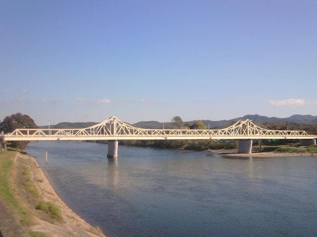 北上市内から展勝地に向かう途中、北上川に架かる橋が珊瑚橋(橋長253.8)です。この橋は1908(明治41)年、立花村(当時)の高舘徳次郎が私財を投じて造りあげたもので、有料で通行することができました。 当初は木製だった為、完成の翌年に洪水で流失するなど、たびたび流失、架け替えを繰り返し、1933(昭和8)年に現在のようなゲルバー橋に架け替えられました。 東京の両国橋や大阪の天満橋と同じ構造であり、夜間照明もあることから、当時は県1・2の名橋と言われました。