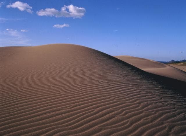 日本最大級の砂丘、鳥取砂丘。雄大な姿は10万年の歳月をかけて生まれました。地形や風などの気象条件によって風紋や砂簾といった様々な表情を見ることができ、珍しい砂丘植物も生息します。鳥取砂丘の自然や生い立ちを紹介する「鳥取砂丘ビジターセンター」もあわせてご利用下さい。 また、近隣に世界初の「砂」を素材にした彫刻作品を展示する「砂の美術館」があり、鳥取砂丘の新名所となっています。