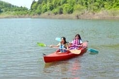 【カヌー】 陸でレクチャーを受けてから湖で体験。※開催日、料金については要問合せ。