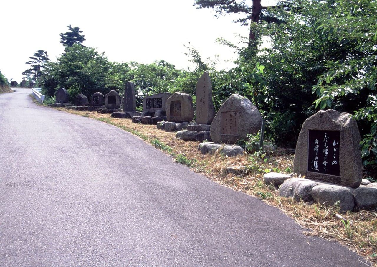 出湯口から村杉口までの約5kmに、250余りの歌碑や句碑が並ぶ林道です。