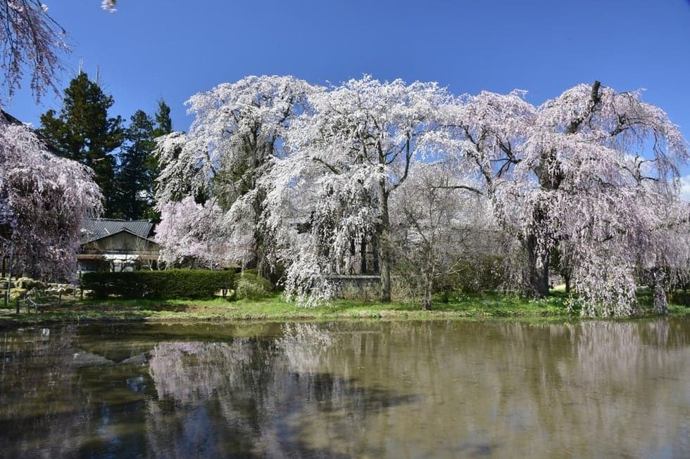 浄土真宗本派の古刹。親鸞聖人蓮如上人御用跡。春には二十数本のシダレ桜の大樹で境内が桜色に染まる。