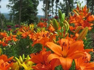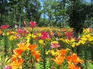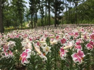 あじさい園には約27,000株、825品種が植栽されており、平田村でしか見ることができないオリジナル品種も約40種あります。2018年7月には、「展示されたアジサイの最多品種数372品種」で世界一になりました。大きさ、色合い、形もさまざまなアジサイが鑑賞できます。また、ゆり園には約18,000本36種が咲き競い、ゆりの香りに包まれた花園が楽しめます。6月下旬から7月中旬までお楽しみいただけます。