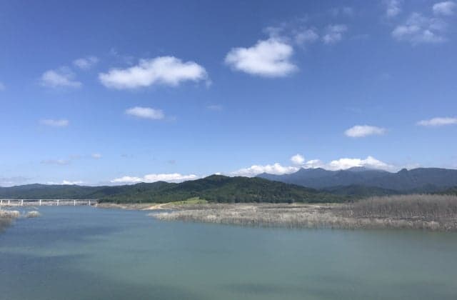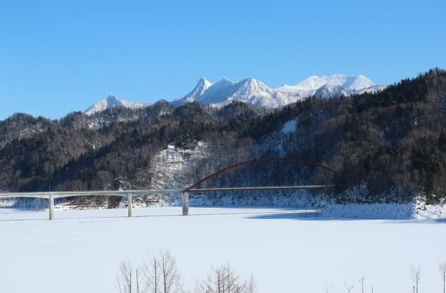 夕張岳を背にした道内有数の人造湖。周囲は原始林である。