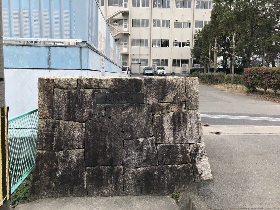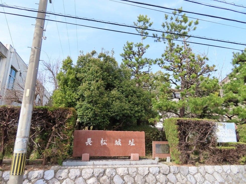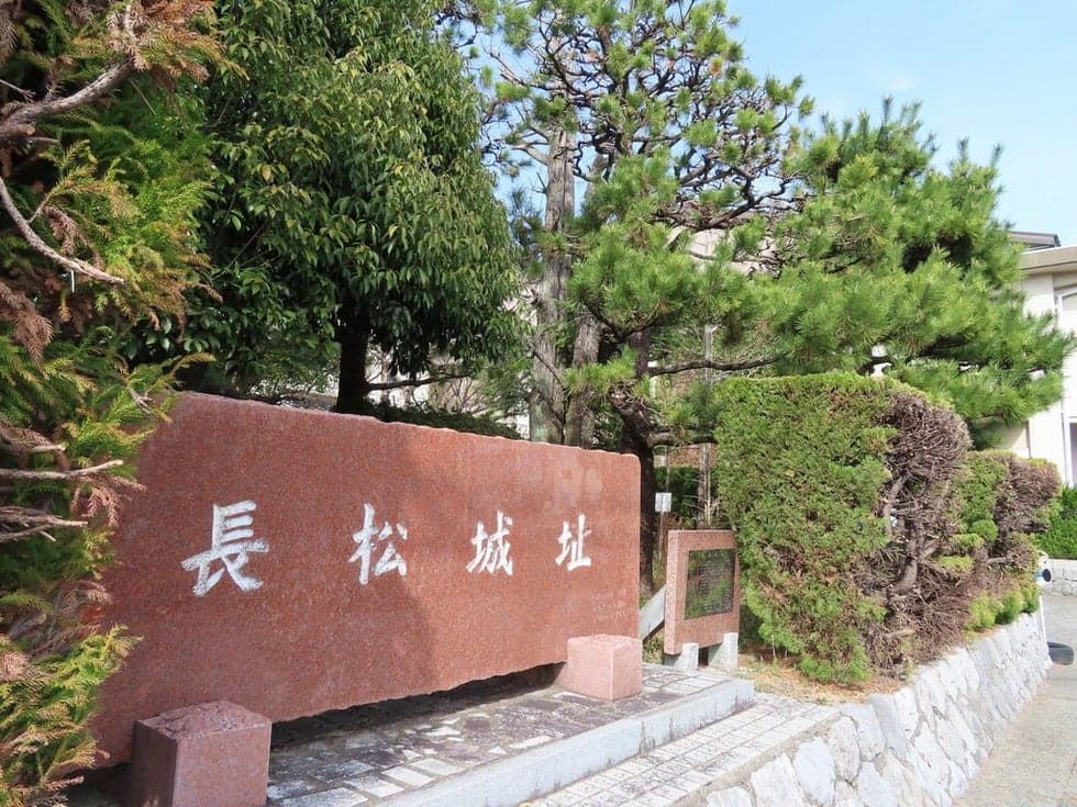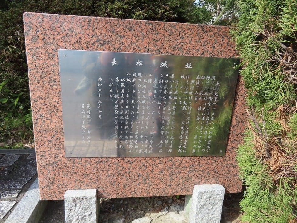 大垣市荒崎小学校付近が、竹中半兵衛の同族 竹中一族ゆかりの城「長松城」の跡と考えられており「長松城址」の標石が立てられています。ここは同城堀のうちの一部であり、古城図を見ると旧長松村の集落全体が、城郭の形を成しています。その城郭を囲むように曲がり角が多くあり「長松七曲がり」といわれています。現在城址は、荒崎小学校の敷地となっており遺構はありませんが、校門脇に城址碑が建てられています。
