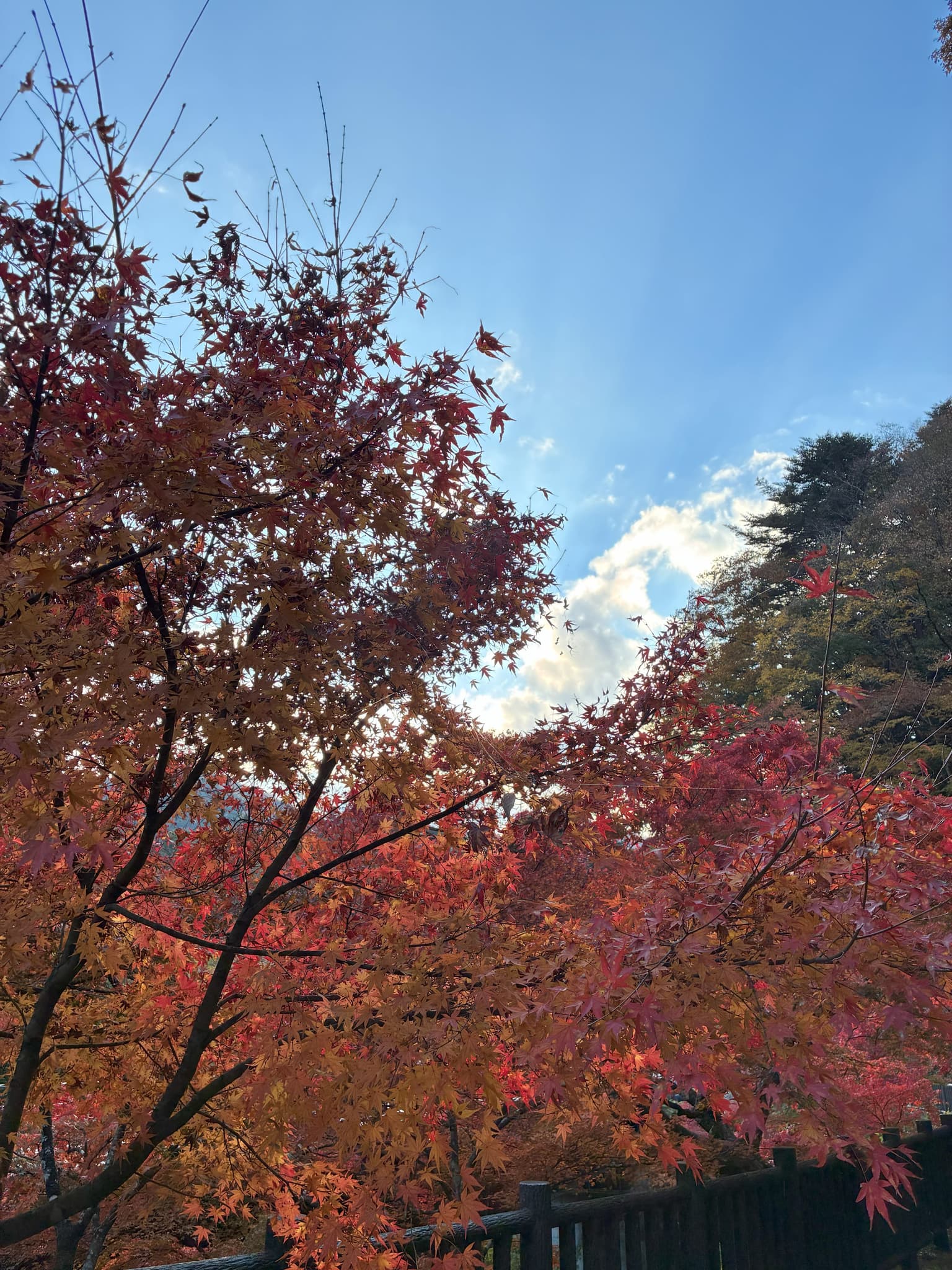スカイツリーと同じ標高(634m)にあり、都心よりは気温が低いため、少し早い紅葉が見られます。