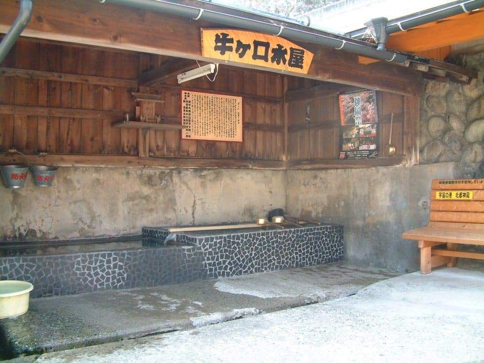 神岡町は水の豊かな町です。大洞山、二十五山を始め、水を供給する豊かな山のおかげです。行政管理の上水道ができるまでは、住民はそれぞれ水道組合をつくり、山水、湧き水から水を引き、各家に配水利用していました。そのため、今日でも山水と市の上水道の2つの蛇口がある家があります。共同水屋は、組合員が共同で利用するために設けられたものです。今でも野菜を洗ったり冷やしたりと利用されています。住民が顔を合わせる「よりどころ」として大切に受け継がれ、住民共同で維持管理をしています。町内には歴史、趣のある水屋が点在します。水屋を探しての街歩きも魅力です。