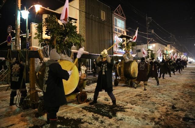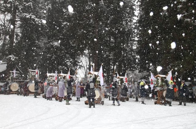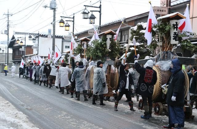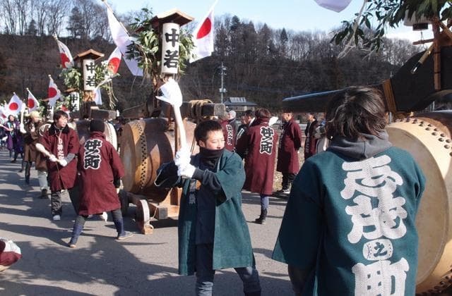 鳥追い祭りは約400年の歴史を持つといわれている中之条町の伝統行事です。田畑の作物を荒らす鳥や獣を追い払い、五穀豊穣や家内安全と厄除けなどを願って始められました。勇壮な掛け声と共に県の文化財に指定されている大小様々な大きさの鳥追い太鼓を叩き町内を練り歩きます。