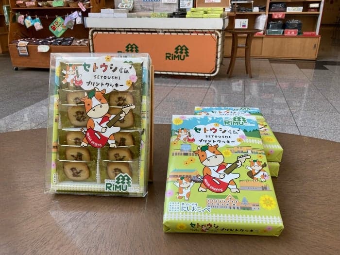 村内の牧場の生乳を使用して製造され、村の公式キャラクター「セトウシくん」がプリントされた愛らしいクッキー。