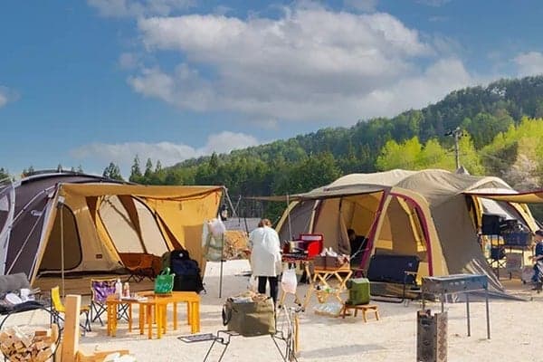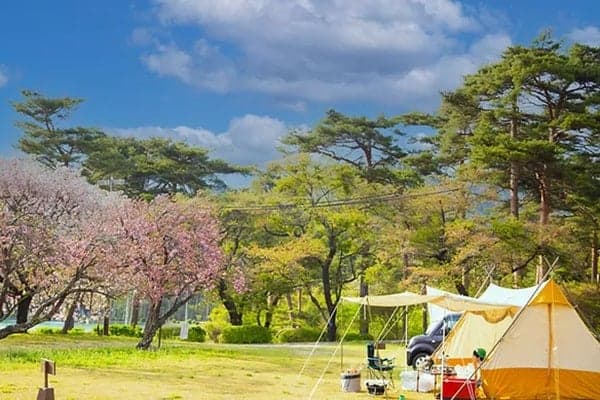 湖面に映える中央アルプスの四季折々の眺望がすばらしい、閑静なキャンプ場。城ヶ池では釣りも楽しめます。
