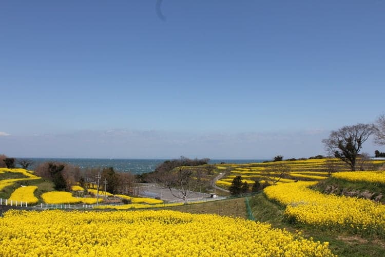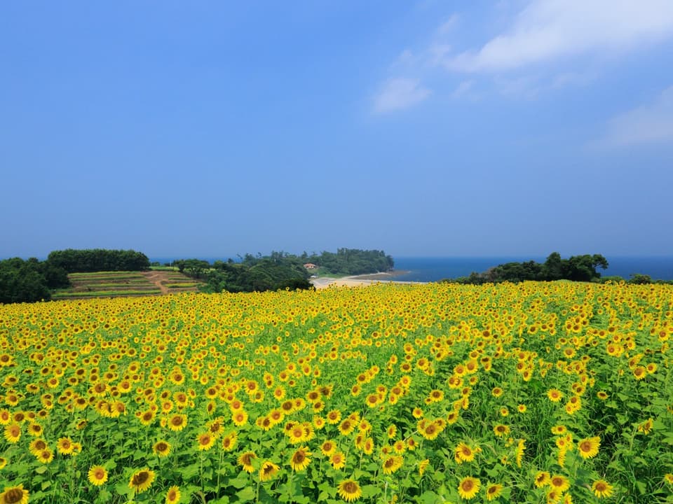 春には約2,200万本の菜の花、夏には約140万本のひまわりが咲く人気のスポット。アート作品も点在しており、海水浴場ではキャンピングトレーラーに宿泊もできます。カフェやレストランも常設しているので、ドライブでの立ち寄りスポットとしてもオススメ。