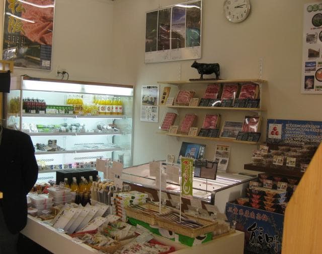 JR松阪駅に隣接して松阪牛の精肉販売・地方発送をはじめ、松阪銘菓、松阪木綿、松阪市のマスコットキャラクター「ちゃちゃも」のグッズ等、松阪のお土産物を多数取り揃えています。