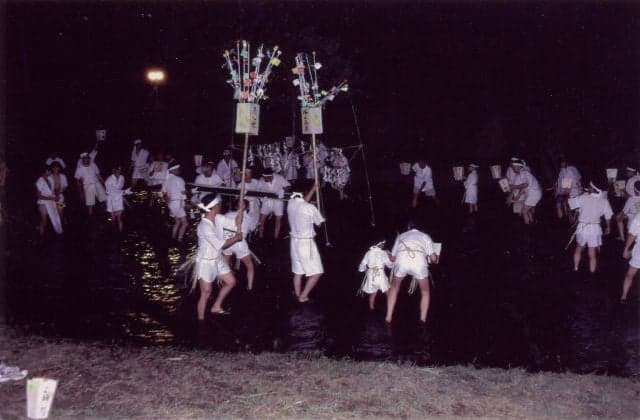 万燈を手に「ザンゲザンゲ六根清浄」と唱えて町内を一巡し、家内安全、無病息災、延命長寿を願います。