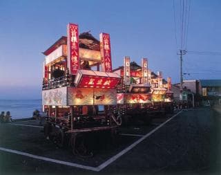 江戸時代から300年余りの歴史のある例大祭。海上安全や魔除けの御利益があるとされ、古くから信仰されてきた箭根森(やのねもり)八幡宮で毎年9月14、15、16日に行われます。由緒ある神楽や神輿、山車が絢爛に町中を練り歩き、京都祇園祭の流れを汲み、盛大に行われています。「ヤーコーリャ」の掛け声で方向転換する山車は、見応えあり。厳かに鎮座する神社でのお祭りに伝統を感じられます。