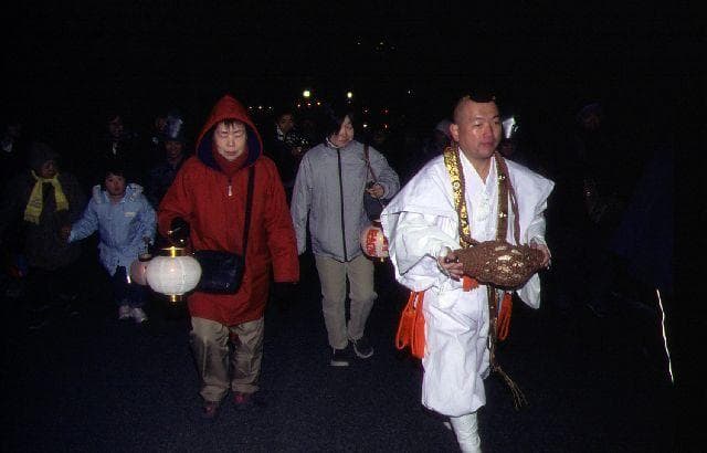 一年間積もった鬱憤を晴らし、すがすがしい気分で新年を迎えようというお祭りです。大晦日の晩から元旦の未明にかけて、大声で悪口を言いあいながら山頂の本堂を目指します。大きな声を競い合う「大声コンクール」も開かれます。その後は、本堂で僧侶が信者の頭上から酒を注ぐ「滝流しの式」が行われます。