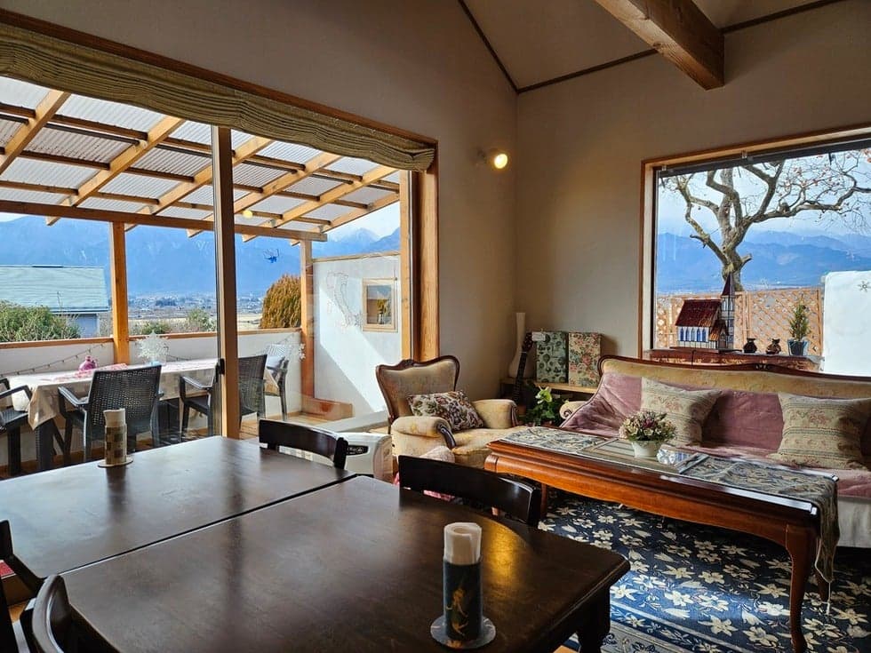 - ●お車でお越しの方 安曇野ICから約20分 店舗は池田町『鵜山の桜並木』を下った所にあります。下記のいずれかの道順でお越し下さい。 1.見晴らしワインロードから鵜山の桜並木を下る または 2.県道51号線沿い『和食処しもさと』さんの角を東に折れ、水路沿いに東山を上がる ●公共交通機関でお越しの方 信濃松川駅からタクシーで約14分 安曇追分駅からタクシーで約7分 明科駅からタクシーで約10分