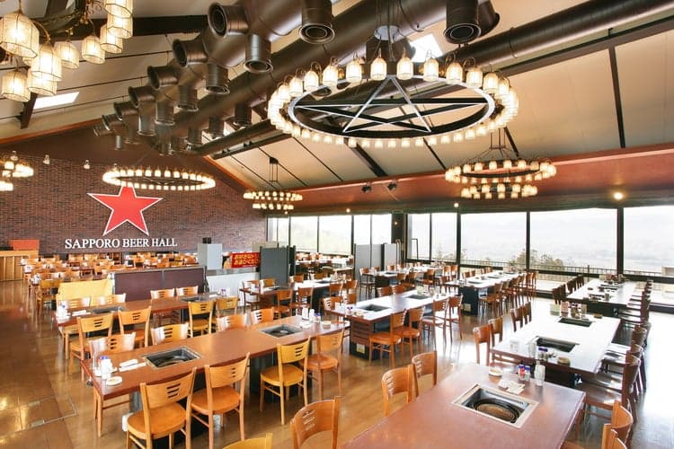 併設の「日田森のビール園」では、工場できたてのサッポロ生ビール黒ラベル、ヱビスビールをはじめ、店長おすすめの焼き肉メニュー、ジンギスカンなどが味わえます。