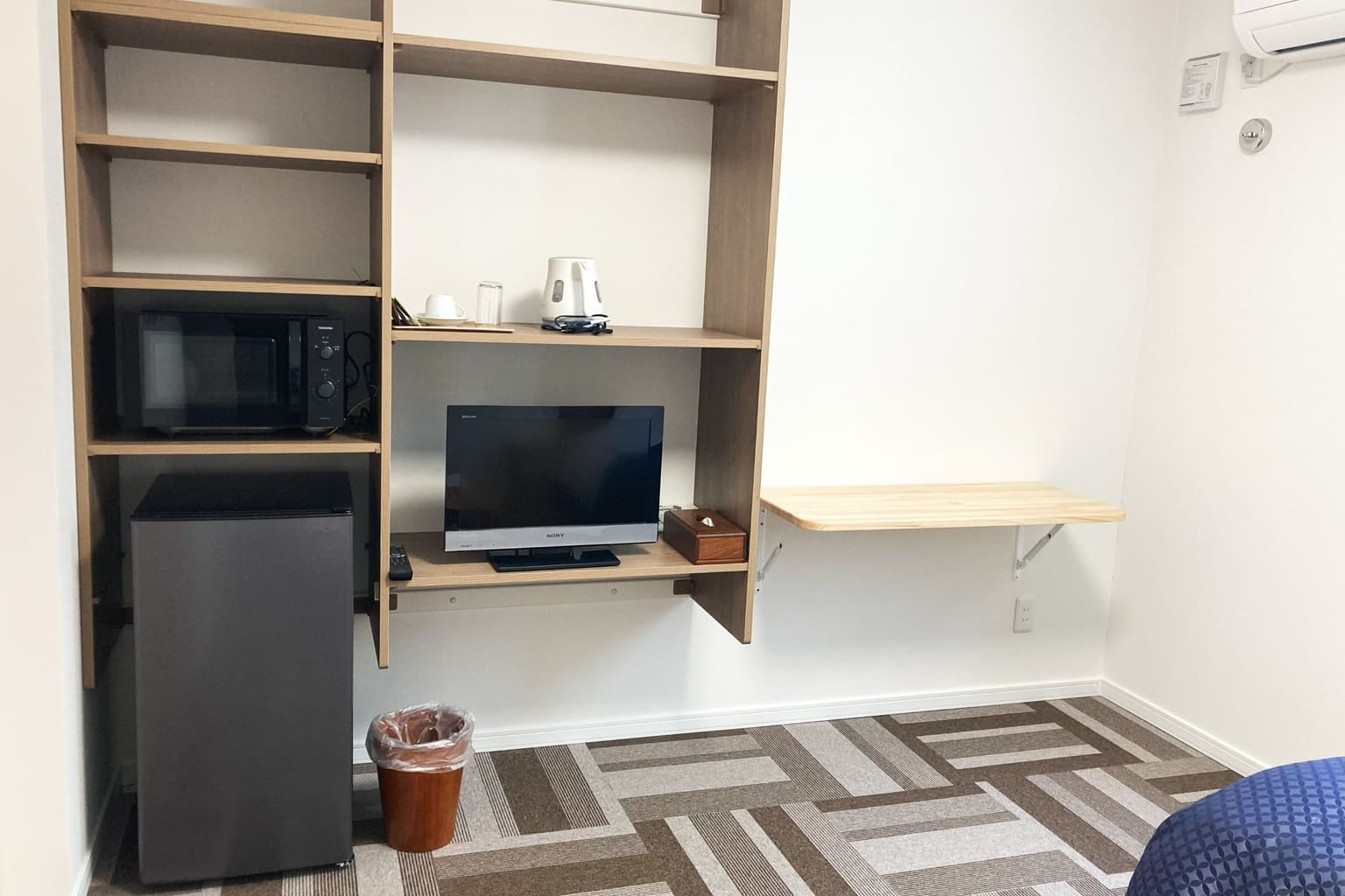 各部屋にはキッチンがついており、長期滞在の際には自炊をすることもできます。