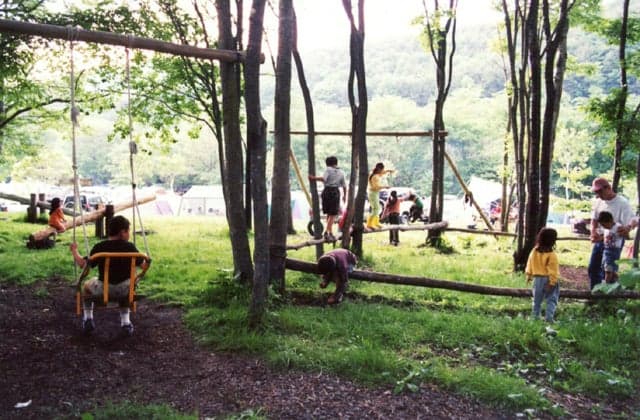 標高980メートル、高原の涼しさ満点のキャンプ場です。場内では昆虫採集や、渓流(駒ケ沢川)での川遊びや釣りもできます。6月頃には、色とりどりのハナショウブ、山吹色のニッコウキスゲが咲き、緑の中に綺麗な彩りを添えてくれます。