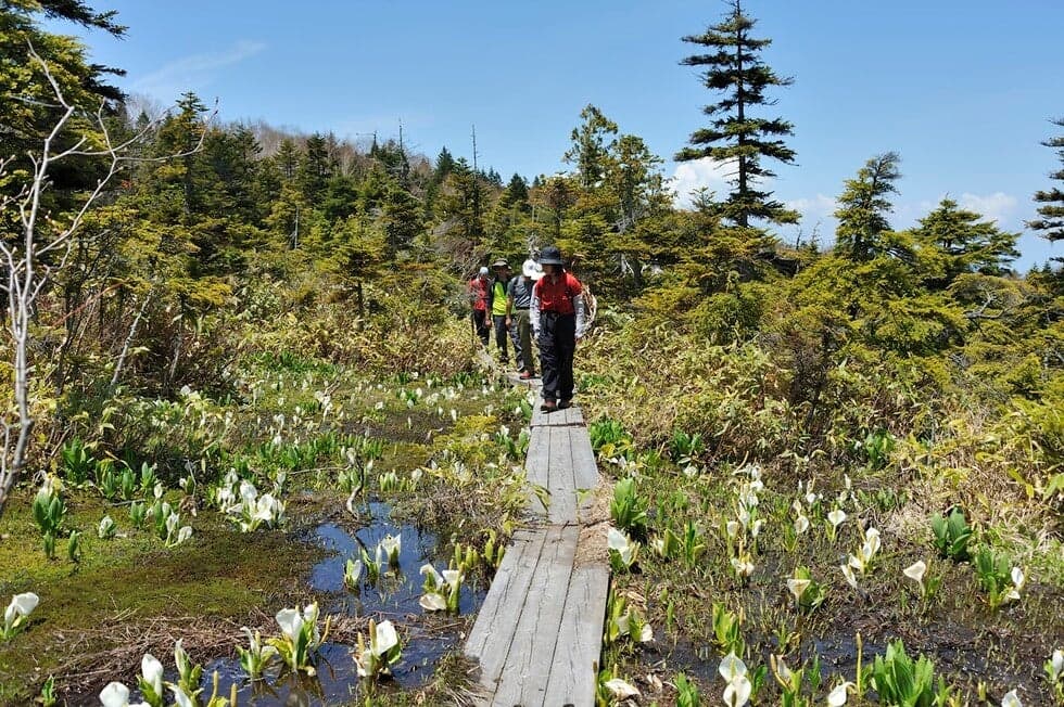 竜王山頂にある小さな湿原。周囲は遊歩道も整備されており、森林浴を楽しみながらトレッキングもできます。