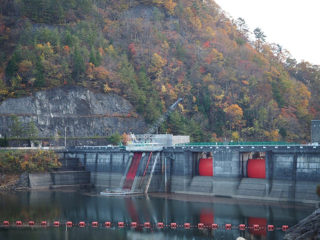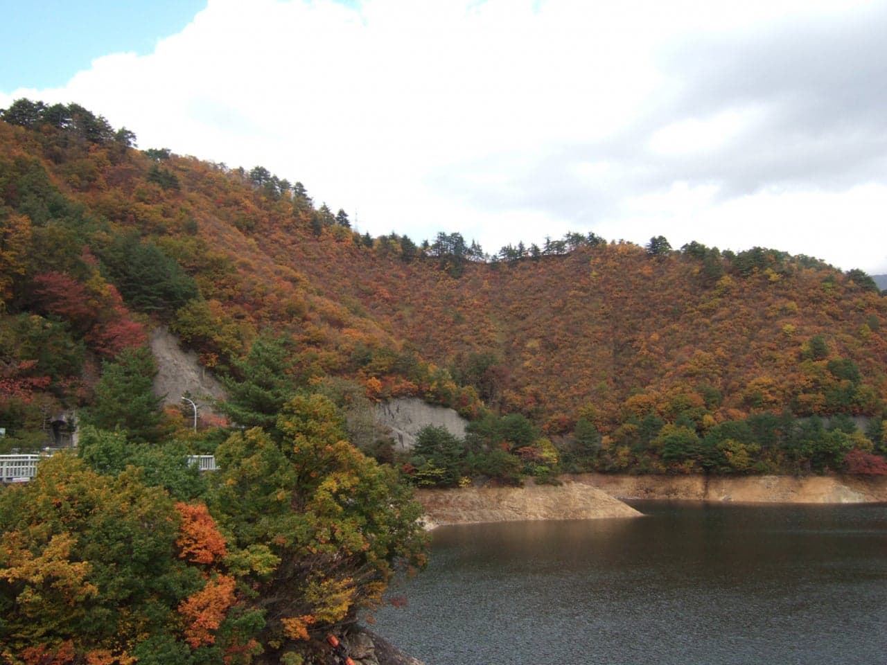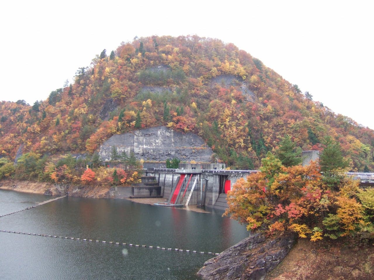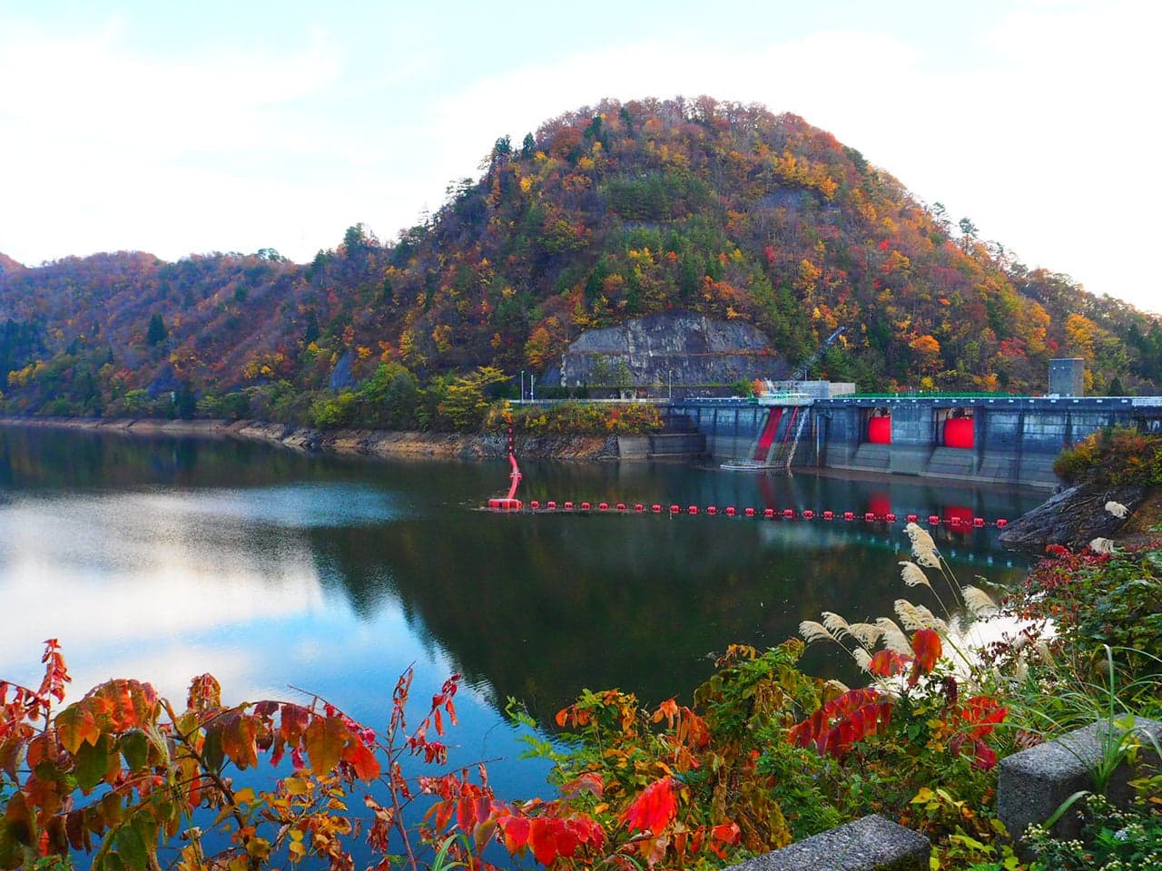 ダムの湖畔には、広い公園があり紅葉の名所になっています。
