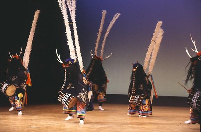 元禄年間に伝わる鹿子躍で,中立,女鹿子,側鹿子(6名)の計8名で構成される鹿子躍。