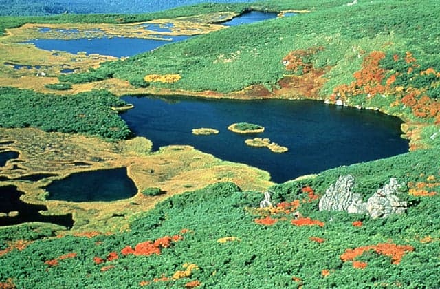 大雪山の西山麓にひろがる標高1,300m前後の大湿原地帯で,三ノ沼や半月沼など多くの池沼が散在する。