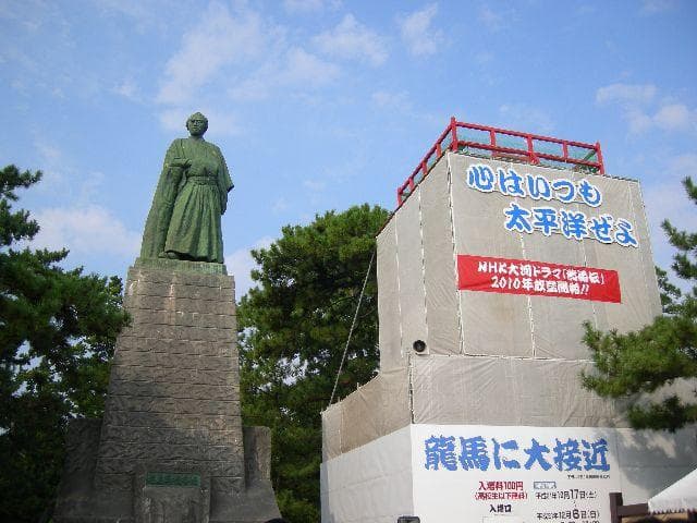 雄大な太平洋を望む景勝地であり、月の名所としても全国に名を知られる桂浜。その桂浜公園内に建立された坂本龍馬像横に設置された高さ約13メートルの特設展望台から、龍馬と同じ目線で太平洋を一望することができます。やぐらに登ると、日本の未来を見つけ続けた龍馬の横顔を、間近で眺められます。あなたも是非、日本史に残る偉人と肩を並べて「大接近」してみてはいかがでしょうか。