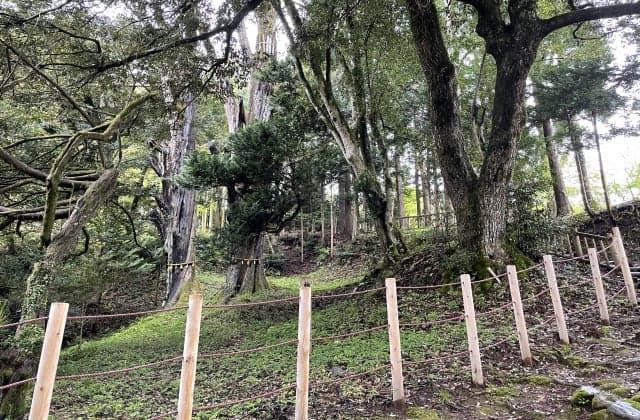 アテとはヒノキアスナロの北陸地方での呼び名。浦上の泉家の庭にある2本の老木で樹齢800年、周囲は4mに達する。藤原秀衡の三男泉三郎忠衡が、文治5年(1189)に奥州平泉より持ってきたものとも、天正年間に泉家19代の兵右衛門が東北地方から苗木を持参したともいわれている。