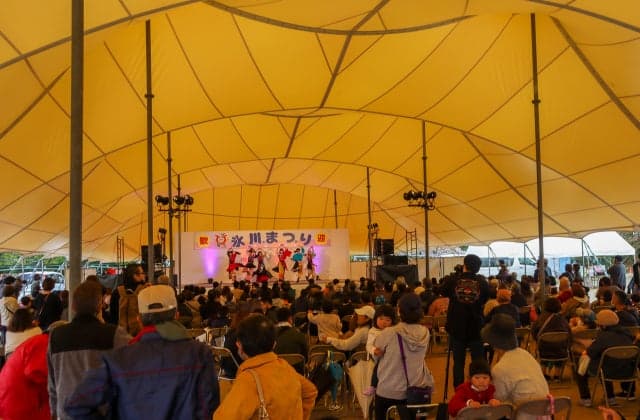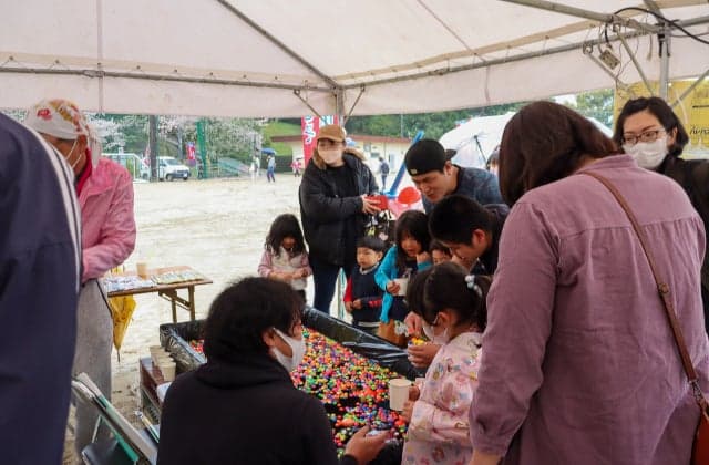 前夜祭と本祭の2日間にわたって開催されるお祭りで、会場はシダレザクラやソメイヨシノ、ヤエザクラが美しい桜ケ丘グラウンドです。前夜祭にはカラオケ大会が催され、地区対抗の部、職場・団体の部と続き、「城南火の君太鼓」の演奏を挟んで表彰式が行われます。本祭では、キャラクターショーやビンゴゲーム、抽選会、地元の子どもたちによる発表会、ゲストによるステージイベントなどが催され、最後には参加者全員で餅投げを楽しみます。