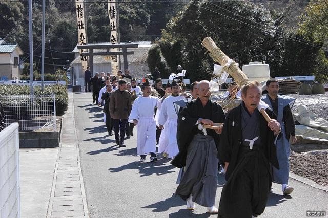 全国的にも珍しい宮座の制度が残るお祭りで、県の無形民俗文化財に指定されています。御榊様と呼ばれる餅と榊で作った御神体や、栗の木と藁で作った小屋はこのお祭りでしか見られません。
