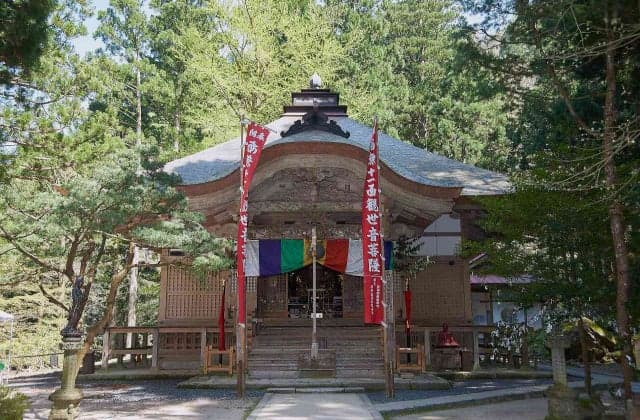 役行者が開いたという天台宗の古刹。三徳山に点在する堂、僧坊の総本堂。10月最終日曜日の「炎の祭典」では多くの人で賑わう。奥の院「投入堂」は国宝に指定されており、断崖に立つその姿は壮観です。中国33観音霊場の第31番札所。