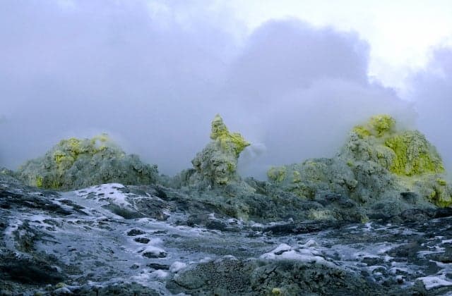 噴気孔のすぐ近くまで行くことができます。黄色の硫黄の結晶がいくつも見られ、勢いよく噴気があがる様はとてもダイナミック。地球の鼓動を間近に感じられる空間が広がっています。