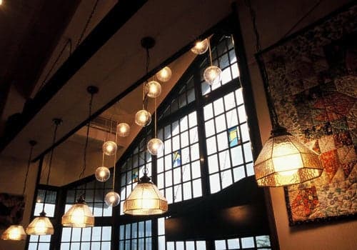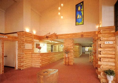 志賀高原 ファミリースキー 目の前!ステンドグラスとパッチワークが美しいホテルです。