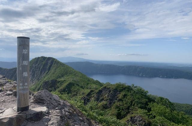 観光名所「摩周湖カムイテラス」の脇に登山口があり、入林届を済ませたらスタート。登山道は摩周外輪山の尾根を歩いていきます。頂上では眼下に摩周湖や爆裂火口、遠くには西別岳や藻琴山、雄阿寒岳までをも眺めることができます。