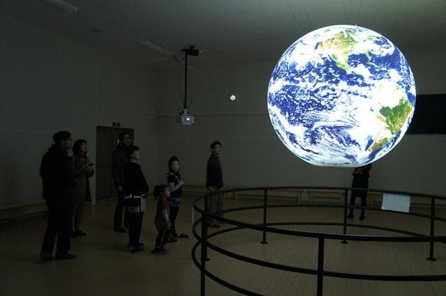 日本初のデータ投影型科学地球儀(SOS)を備えた施設。アメリカ海洋大気庁(NOAA)から送られてくる気象情報や太陽系のデータが直径約1.7mの球体に映し出され、世界規模での気象変化の様子や天体・雲の様子などを臨場感たっぷりにリアルタイムで見ることができます。