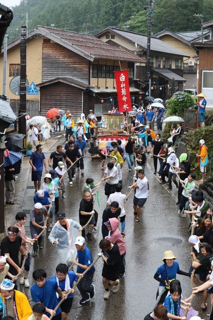 泰澄大師が白山を開山したことを起源とするもので、白峰地区の伝統と文化が息づいています。臼みこしや泰澄行列、かんこ踊りの輪踊りのほか、延命水山台曳きなどが行われます。