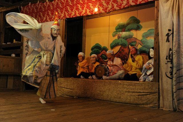 8月第1土曜日に,産土神の神庭山祇神社の神楽殿で上演される。