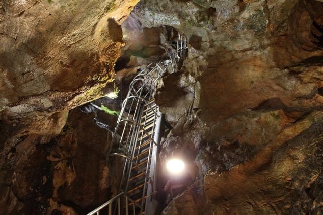 京都府唯一の鍾乳洞。総延長52.5m、高低差25.1mの竪穴洞窟は