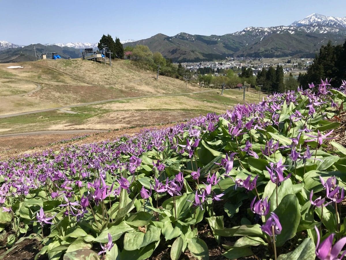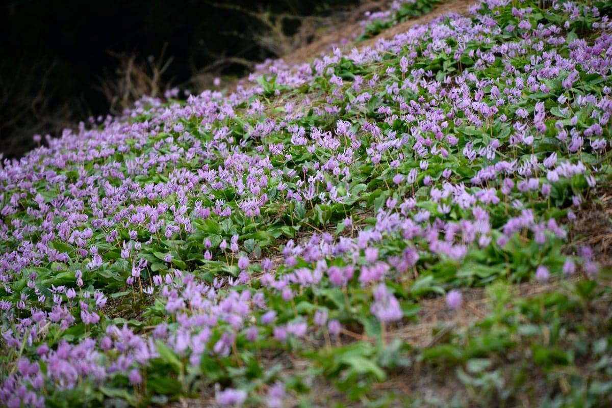 公園側斜面と第3リフト付近にカタクリが群生しています。