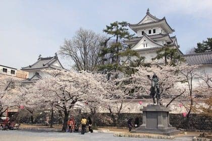 全国的にも珍しい4層の天守を持ち、「城下町・大垣」のシンボルとして市民に親しまれている大垣城。慶長5年(1600年)の関ケ原の戦いでは、西軍・石田三成の本拠地にもなり、本戦部隊が関ケ原に移動した後も壮絶な攻防戦が繰り広げられました。戦国の世が去った江戸時代 寛永12年(1635年)以降には、戸田家11代が十万石の城主を続け、戦火で焼失したものの、昭和34年(1959年)に再建されました。