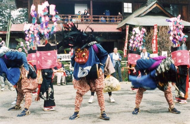 高水山獅子舞は、江戸中期の1768年に奥多摩大丹波の獅子舞師匠を招き習い始め、1795年免許状とも言える秘伝巻物が伝授されたと記録にあります。以来、戦時中もとだえることなく、4月の祭礼の際信徒中により奉納されてきました。昭和43年11月には青梅市の無形民族文化財に指定されました。
