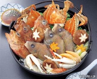 芸予諸島を拠点地として瀬戸内海の航路を支配し、勇名を馳せていた水軍は、船上で取りたての魚を刺身にしたり、焼いたり、炊き込んだりして食事を取っていました。 瀬戸内の新鮮な魚介類を中心に贅沢に豪快な鍋にした水軍鍋もそのひとつです。