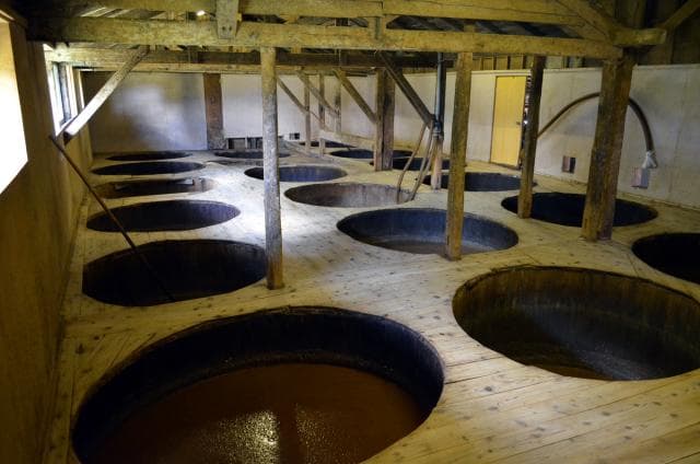 醤油の元となるもろみは二年間もの歳月をかけ、丁寧に熟成させています。